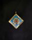 Tibetan Diamond Shaped Pendant, Blue And Red With Gold Designs