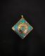 Tibetan Diamond Shaped Pendant, Sea Green With Gold Designs